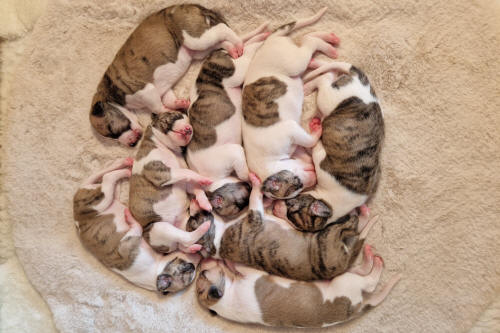 Am 02.05.2024 wurden 2 Rüden und 6 Hündinnen aus folgender Verpaarung geboren